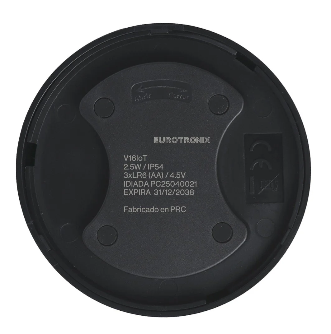 Funciona más de 30 minutos con 3 pilas AA. Resistente al agua y polvo (IP54).